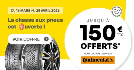 Promotion pour l’achat de pneus Continental 2025 Du 6 octobre au 15 novembre 2025, profitez de l’offre Continental jusqu’à 150€ offerts* […]